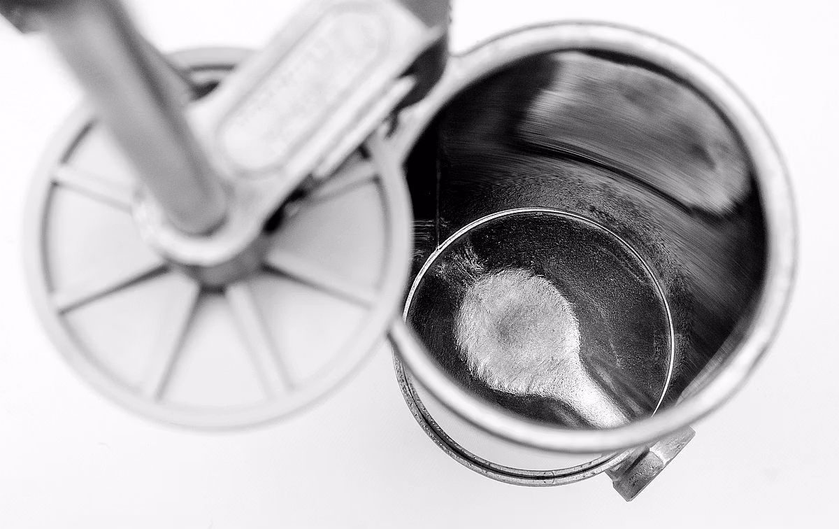Högkvalitativ korvfyllare med manuell drivning. Passar för att fylla korv med många olika typer av köttblandningar. Den vertikala fyllaren har en metallkonstruktion och en cylinder i rostfritt stål som kan roteras 90 grader för enkel fyllning och rengöring.